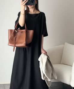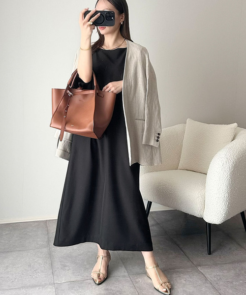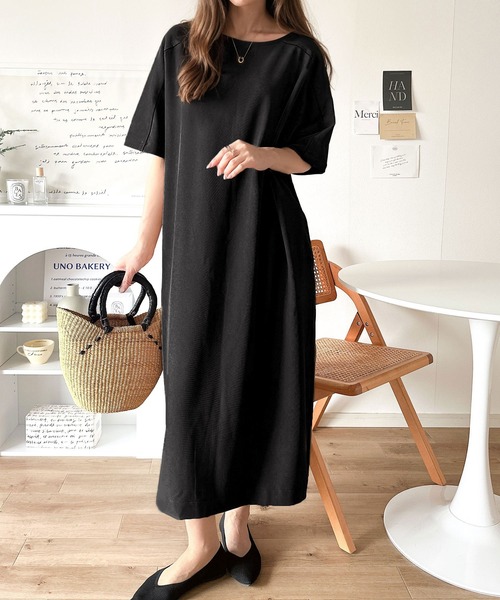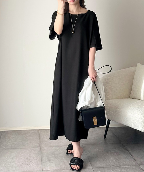 キーワード:ワンピース ロング ワンポイント 七分袖 五分袖 台形 無地 WEB限定 キレイめ ドライブ ピクニック レジャー ベーシック 夏 授業参観 大人カジュアル 定番