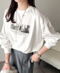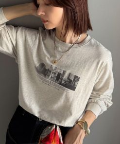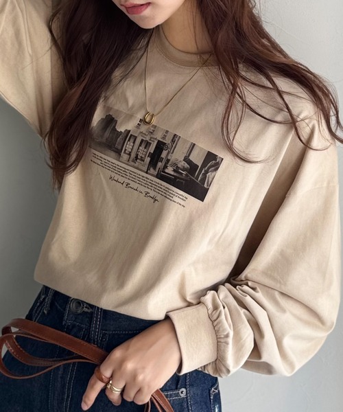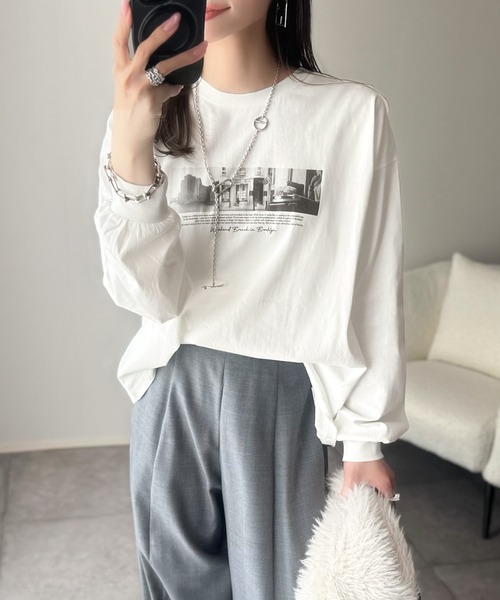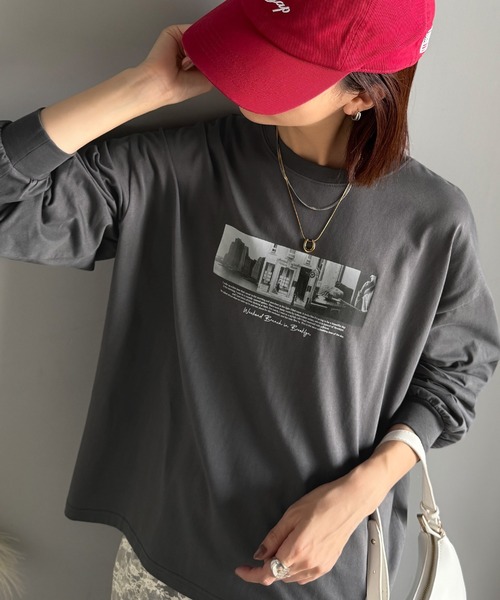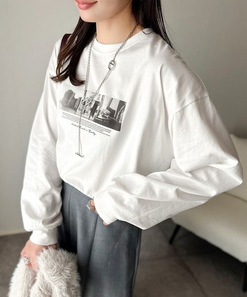 商品名:一枚でも、レイヤードでも。モードな雰囲気で魅せる綿100%モノクロフォトプリントロンT(長袖)
