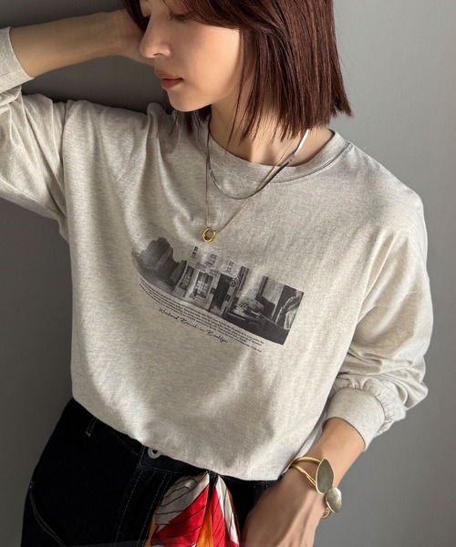 classicalelf tシャツ 一枚でも、レイヤードでも。モードな雰囲気で魅せる綿100%モノクロフォトプリントロンT(長袖) レディース
