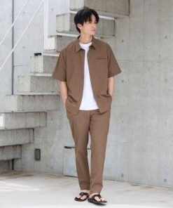 coen 【爽多(R)】リラックス半袖シャツ ーストレッチ、吸水速乾、通気性、洗濯機洗い可ー