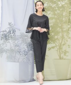 素材:トップス:表地(身生地):ポリエステル97% ポリウレタン3% 表地(シフォン):ポリエステル100% 裏地:ポリエステル100% パンツ:表地(身生地):ポリエステル97% ポリウレタン3%