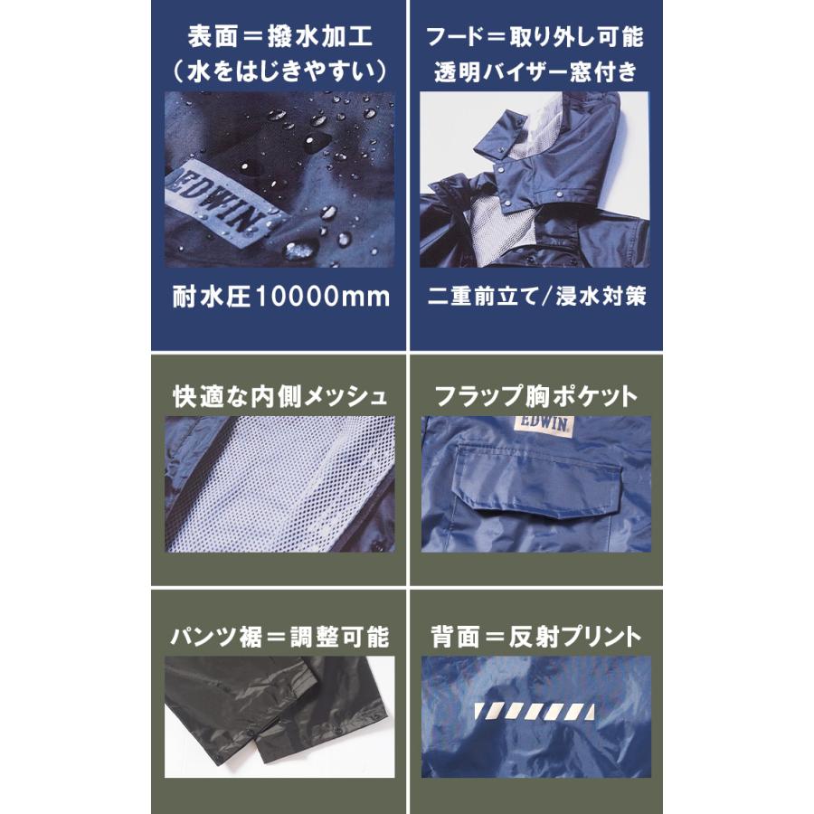 EDWIN エドウィン レインスーツ レインウェア 雨具 上下セット セットアップ (QMON10) メンズ レディース カジュアル ブランド