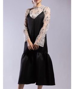 レディース トップス レディーストップス アパレル ブランド 総レース トップス カットソー 花柄 レース 立ち襟 チュールレース 長袖 肌見せ ヘルシー インナーセット インナー付き インナー キャミソール キャミセット キャミ 2点セット レース チュールレース 総柄レース 総レース トップス オーガンジーレース ホワイト ブラック ロングスリーブ 袖 長め ロングスリーブ レース 透け 透け感 シースルー シアー シアートップス シアーブラウス パフスリーブ袖コンシャス チューリップ スリーブ アンブレラスリーブ ベルスリーブ
