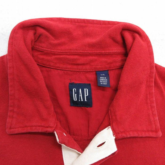 GAP L/古着 ギャップ 半袖 ラガー シャツ メンズ 00s コットン 赤 レッド 25jul24 中古 トップス