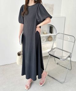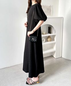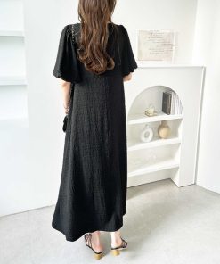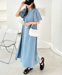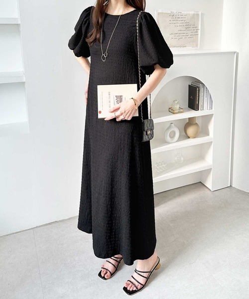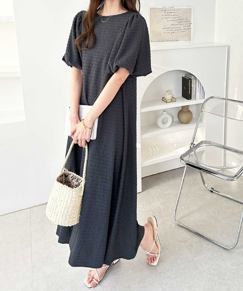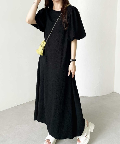 キーワード:ワンピース フレア ロング 七分袖 五分袖 無地