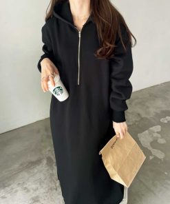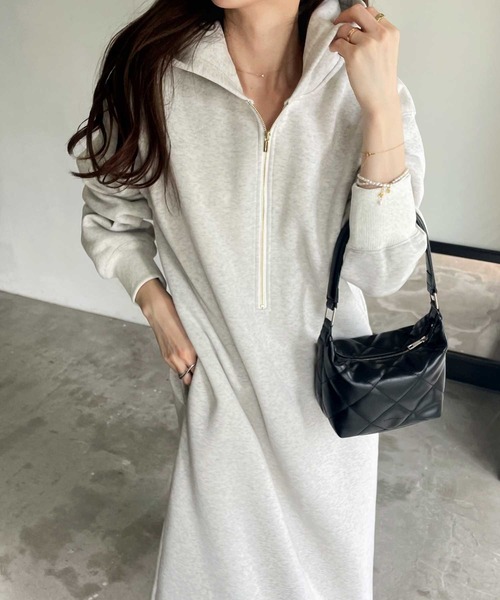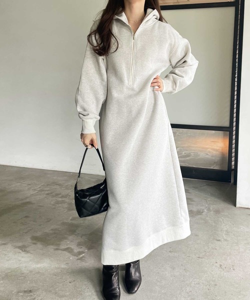 参考商品名:【新色追加】ハーフジップ裏起毛パーカーワンピース