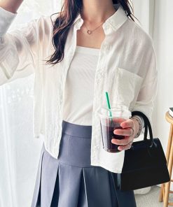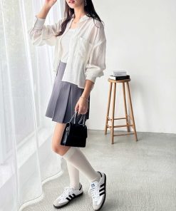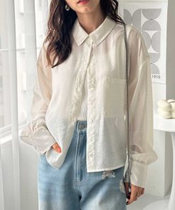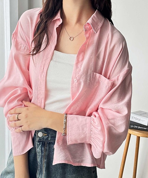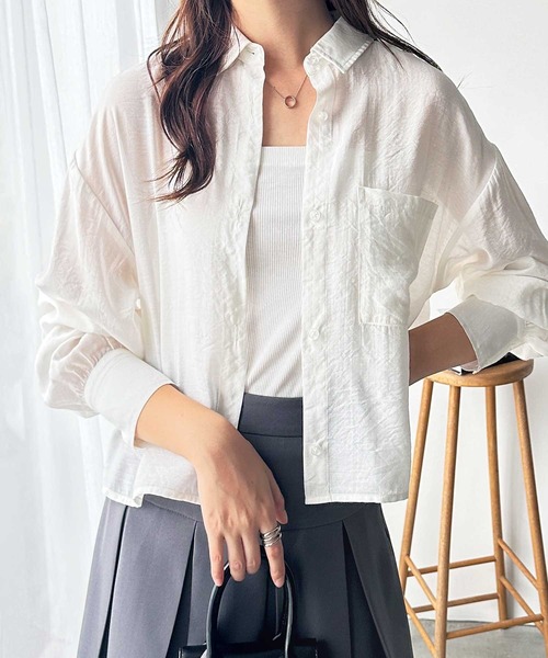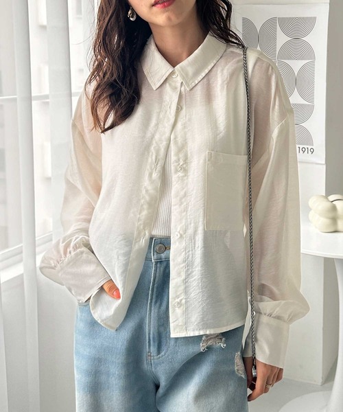 商品名:ボリュームスリーブショート丈シアーシャツ