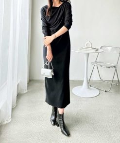 キーワード:ワンピース ロング 台形 長袖 無地