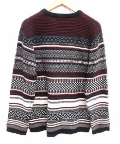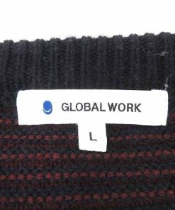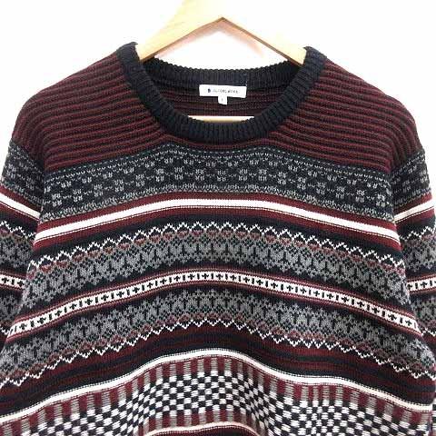 グローバルワーク GLOBAL WORK ニット カットソー 総柄 長袖 L 赤 レッド 紺 ネイビー /YK メンズ