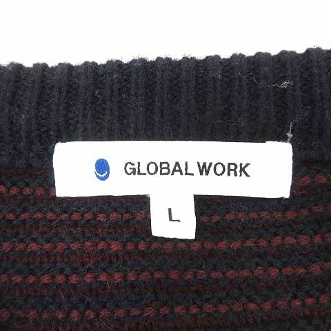 GLOBAL WORK グローバルワーク ニット カットソー 総柄 長袖 L 赤 レッド 紺 ネイビー /YK メンズ