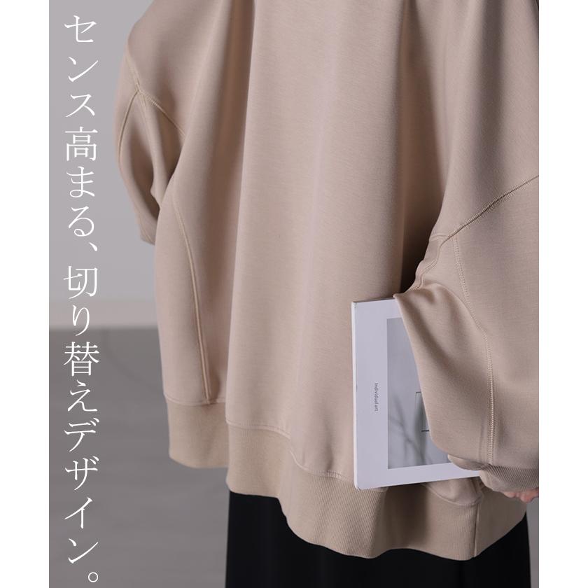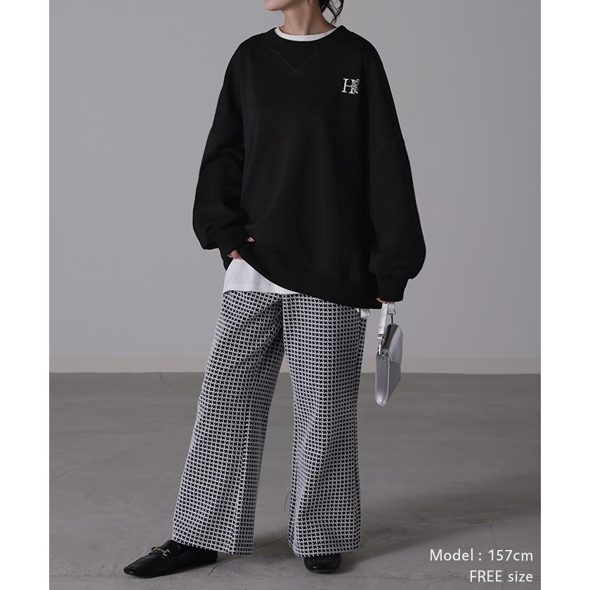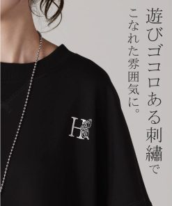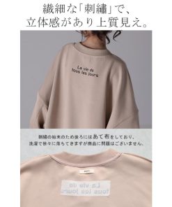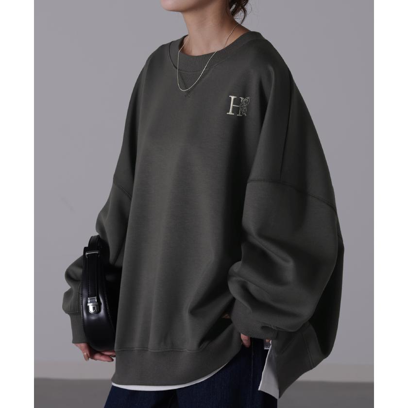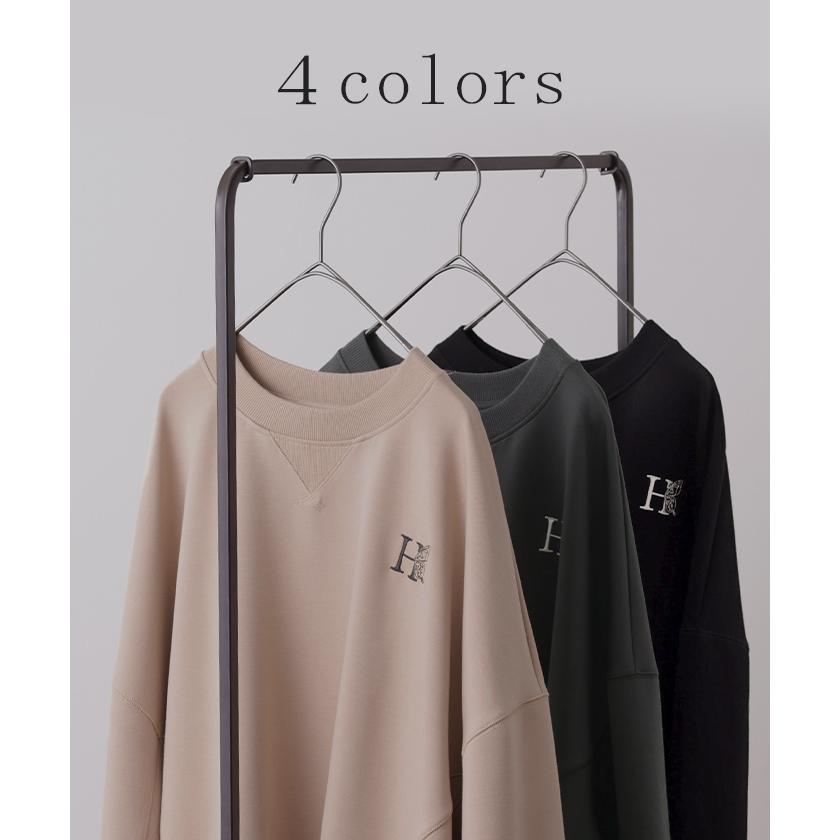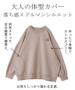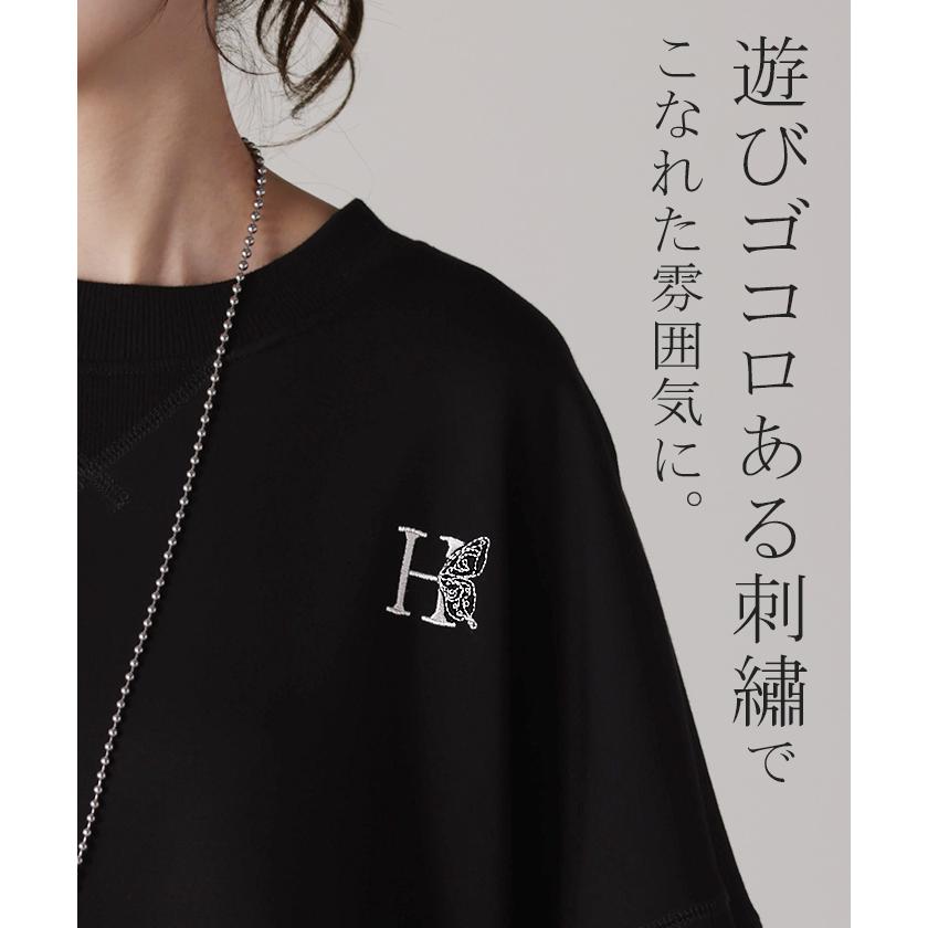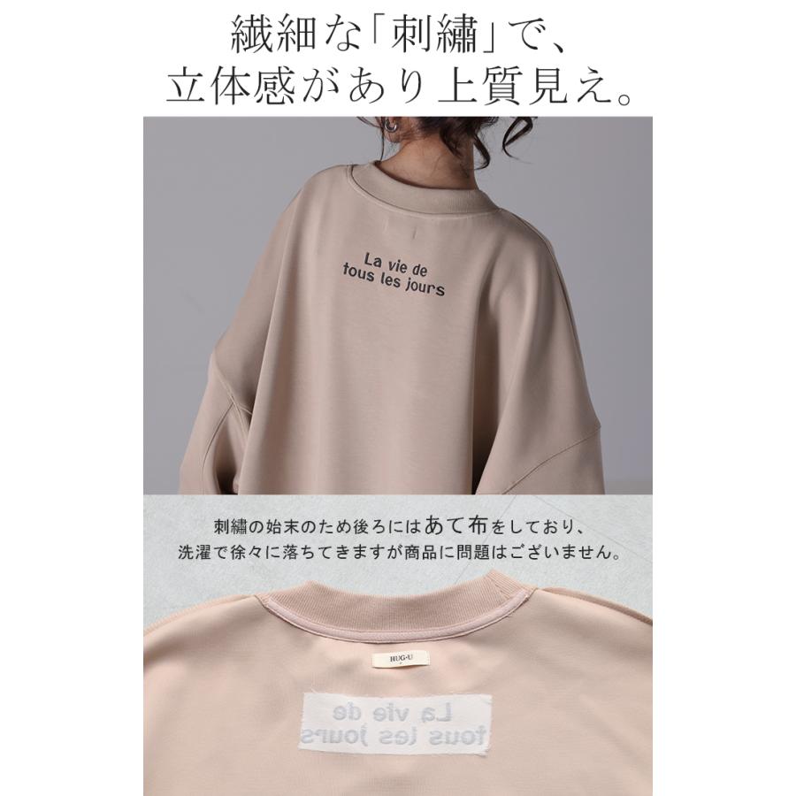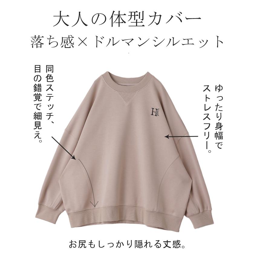 HUG.U スウェット 刺繍 レディース トレーナー トップス 体型カバー チュニック 大きいサイズ 無地 ドルマンスリーブ