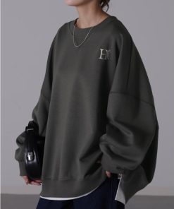 スゥエット 薄手 ワンポイント ドルマン ドルマン袖 ドルマントップス チュニック丈 コクーン コクーンシルエット ルーズ Uネック U字ネック 丸首 ワンポイントロゴ ロゴ刺繍 バルーン袖 ロゴトレーナー ロゴトップス ロゴスウェット ロゴスエット 背中ロゴ バックロゴ ビッグトレーナー ビックスウェット ビッグスウェット ベージュ グレー ダークグレー 灰 灰色 ブラック 黒 旬 トレンド プラスサイズ ビッグシルエット ビッグ ビック big ビックサイズ ビッグサイズ オーバーサイズ 大きい 大きめ フリーサイズ フリー S M L LL 2L XL 3L XXL LLL カジュアル シンプル 大人 大人カジュアル オトナ 女性 綺麗 きれい キレイめ きれいめ 高見え 上質 上品 20代 30代 40代 50代 60代 おしゃれ お洒落 オシャレ 春 夏 秋 冬 春夏 秋冬 HUG.U HUGU ハグユー はぐゆー スエット プルオーバー ビッグ ロング ドロップショルダー ビッグシルエット ゆる ぽわん袖 長袖 秋 冬 HUG.U