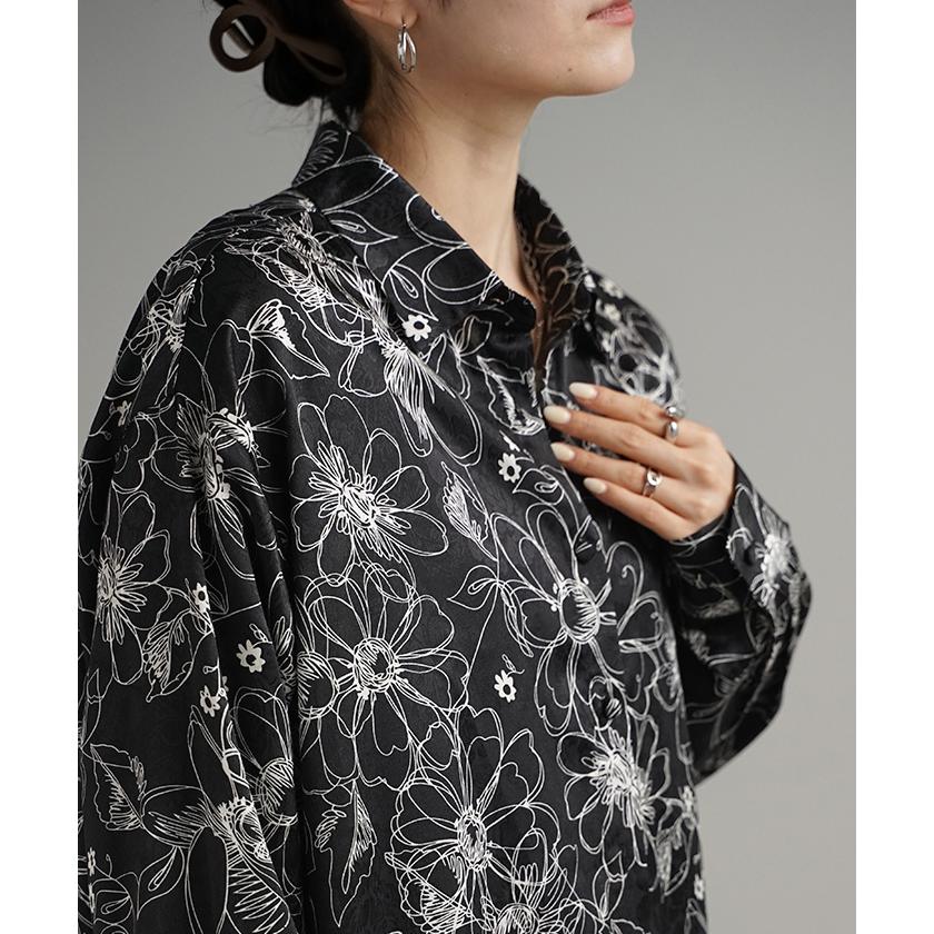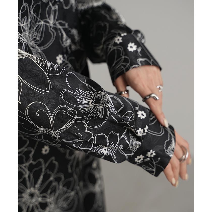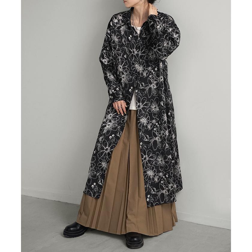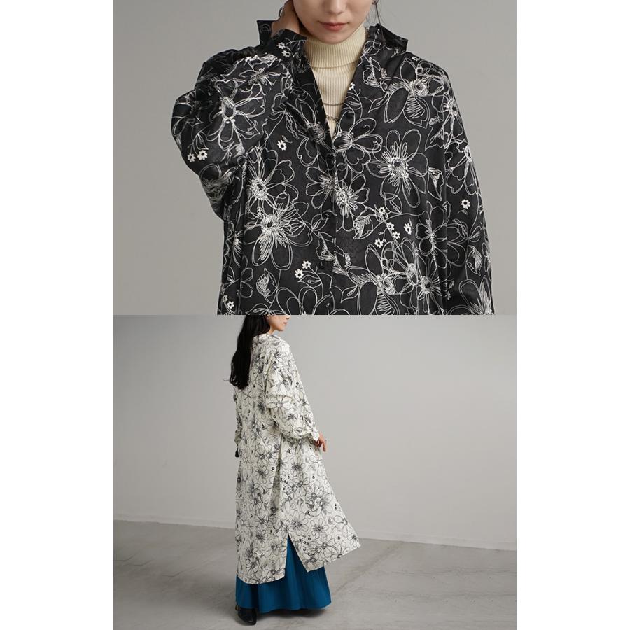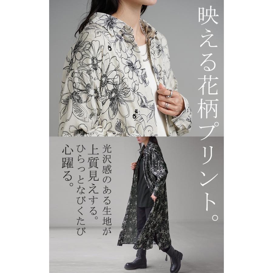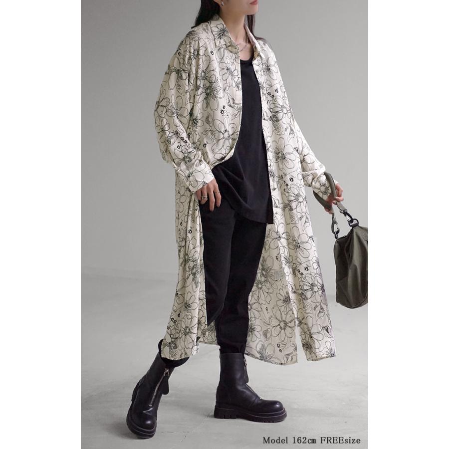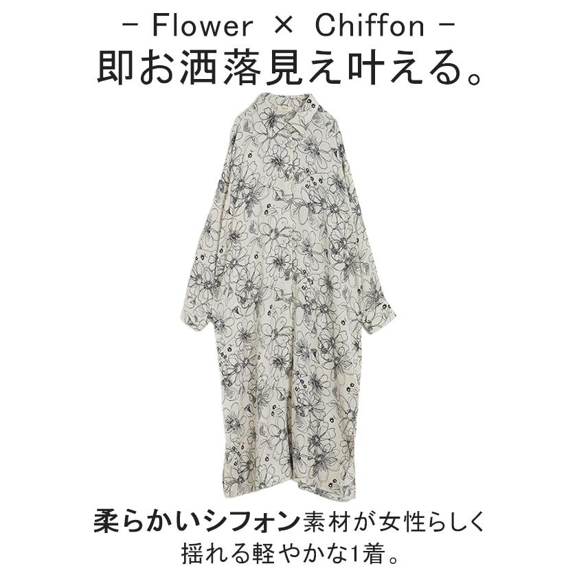 ロングワンピ シャツワンピ 花柄シャツワンピース 花柄シャツワンピ シフォンワンピ 襟付き 襟シャツ チュニック丈 フラワー 花 花柄 小花柄 小花 花柄プリント フラワープリント 柄 柄シャツ ドルマン 長い 長め 前開き 前開きワンピ 前開きワンピース 透け シースルー シアー チュニックワンピース ホワイト 白 白色 ブラック 黒 黒色 レディースファッション 旬 トレンド プラスサイズ オーバーサイズ 大きい 大きめ フリーサイズ フリー S M L LL 2L XL 3L XXL LLL カジュアル ベーシック オフィス オフィスカジュアル 着回し シンプル 大人 大人カジュアル オトナ 女性 綺麗 きれい キレイめ きれいめ 高見え 上質 上品 20代 30代 40代 50代 60代 おしゃれ お洒落 オシャレ 春 夏 秋 冬 春夏 秋冬 HUG.U HUGU ハグユー はぐゆー 透け 体型カバー シフォン ブラウス 大きいサイズ 羽織 Aライン 重ね着