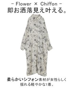 HUG.U SALE ワンピース シャツ 花柄 ワンピ シフォンワンピース ロングワンピース トップス ロングシャツ ロング レディース 長袖 きれいめ シャツワンピース