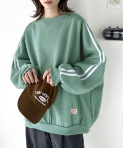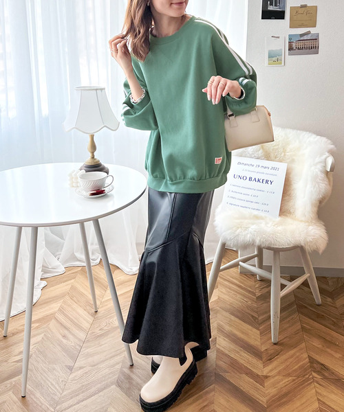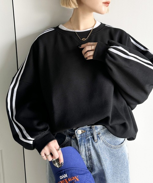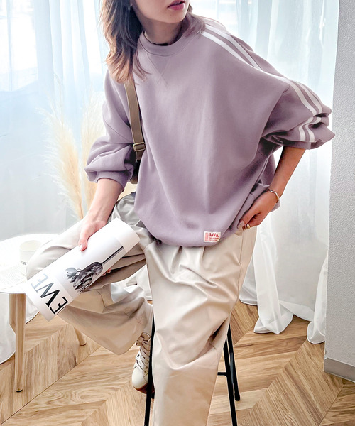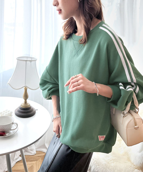 参考商品名:《JaVa ジャバコラボ》レトロ×スポーツMIX。袖ダブルライン裏起毛スウェットプルオーバー