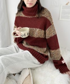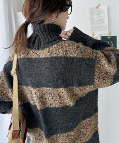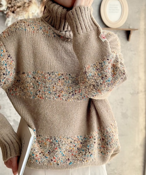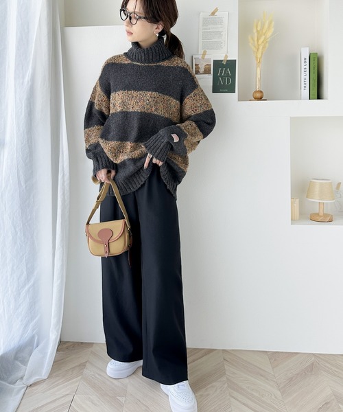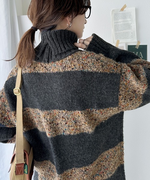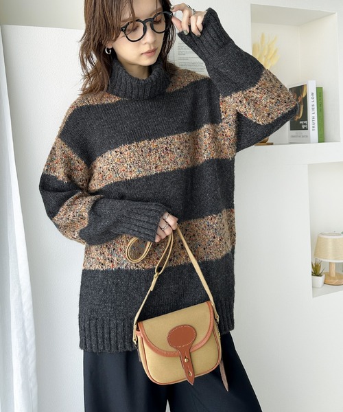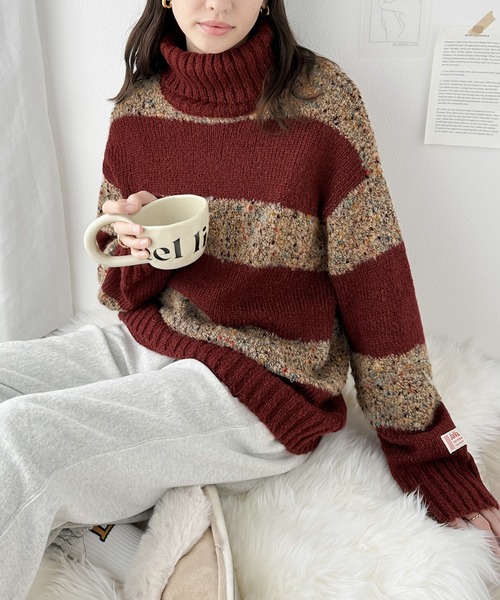 キーワード:ニット セーター レディース タートルネック ボーダー ロング丈 長袖 秋 冬