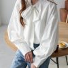 キーワード:ブラウス シャツ レディース コットン ノーカラー ロング丈 長袖 無地
