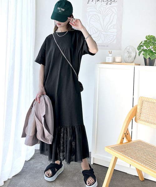 参考商品名:【JaVa ジャバコラボ】トレンドスタイル即完成!レイヤード風チュールコンビTシャツワンピース