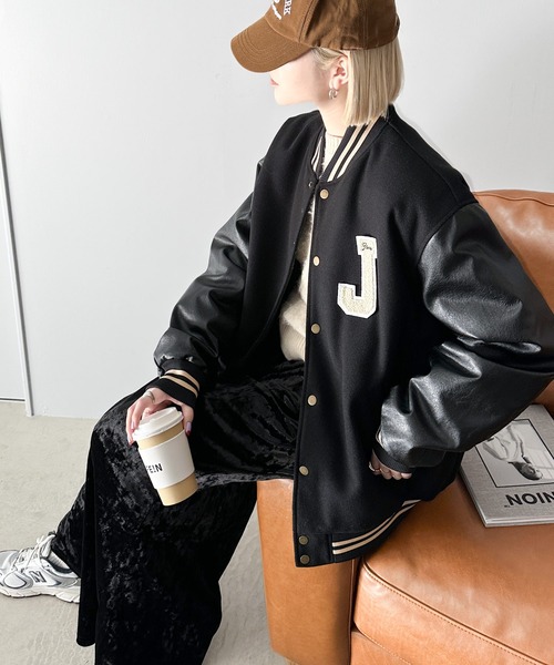 素材:表地:ポリエステル100% 袖部分:合成皮革 裏地:ポリエステル100% 中綿:ポリエステル100% リブ:ポリエステル97%、ポリウレタン3%