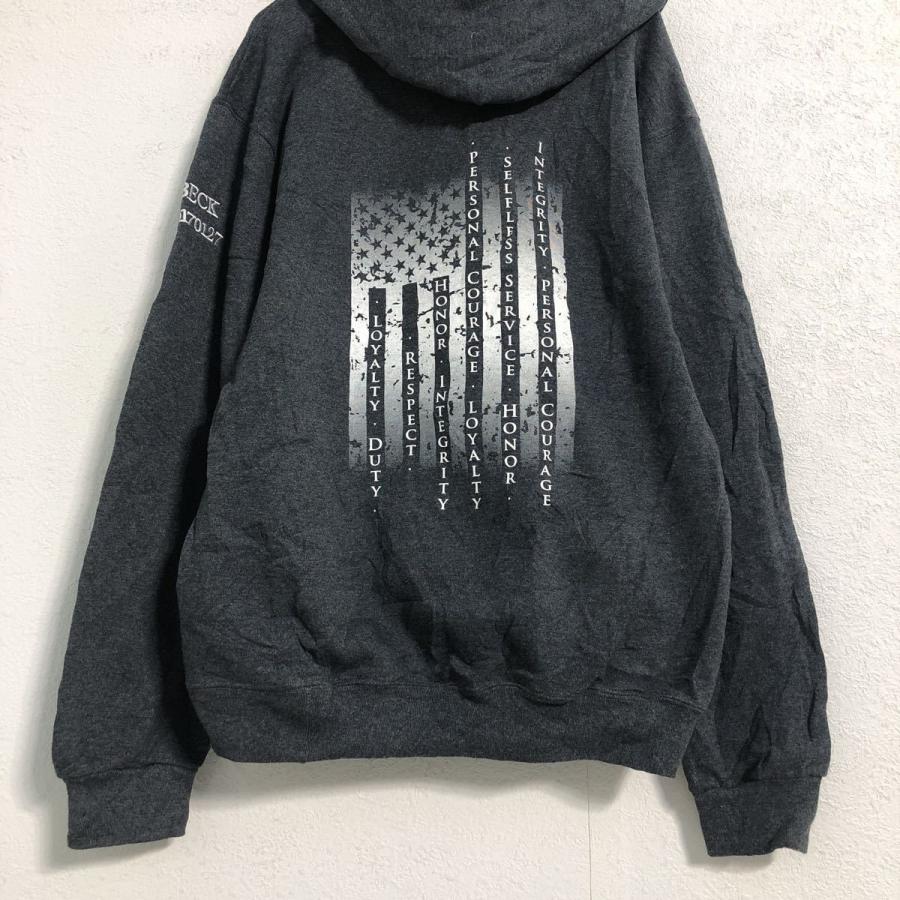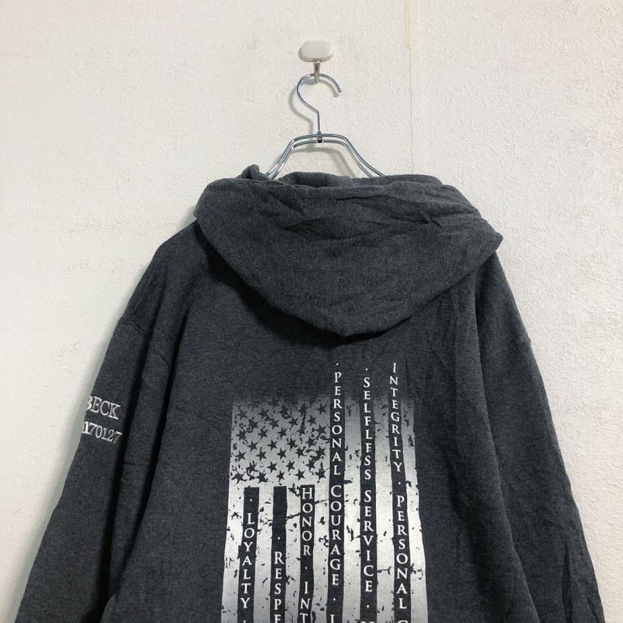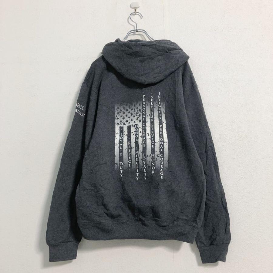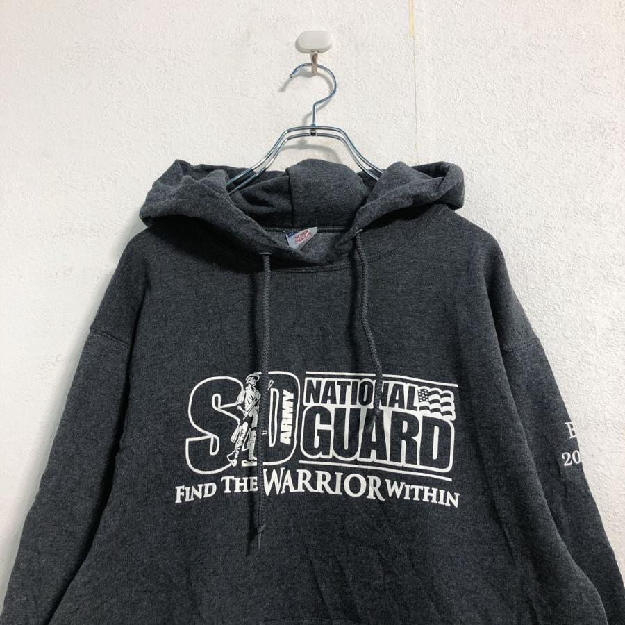 JERZEES プリント スウェット パーカー M ダークグレー ジャージーズ プルオーバー アーミー バックプリント古着卸 アメリカ仕入 a505-5872