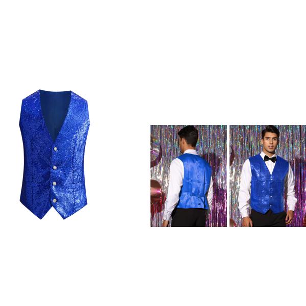 Lars Amadeus チョッキ用スパンコール スーツ ベスト Vネック ノースリーブ ディスコ 光る メンズ ブルー L