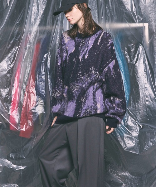 商品名:《UNISEX》Prime-Over Abstract Mohair Shaggy Crew Neck Knit Pullover/プライムオーバーアブストラクトモヘヤシャギークルーネックニットプルオーバー【MAISON SPECIAL/メゾンスペシャル】