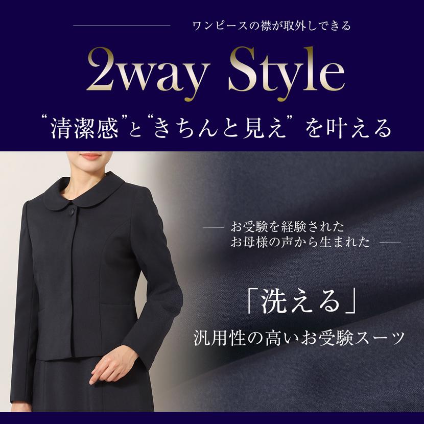 MaryCoco 2WAY 洗える お受験スーツ 襟取り外し可能 お受験 スーツ ワンピース ジャケット 紺 ネイビー 面接 試験 入学式 卒業式 ママ レディース 学校行事 len-0823