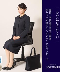 メアリーココの濃紺スーツは長時間順番を座って待つお受験でのシーンを意識し、シワになりにくい生地を使用しています。