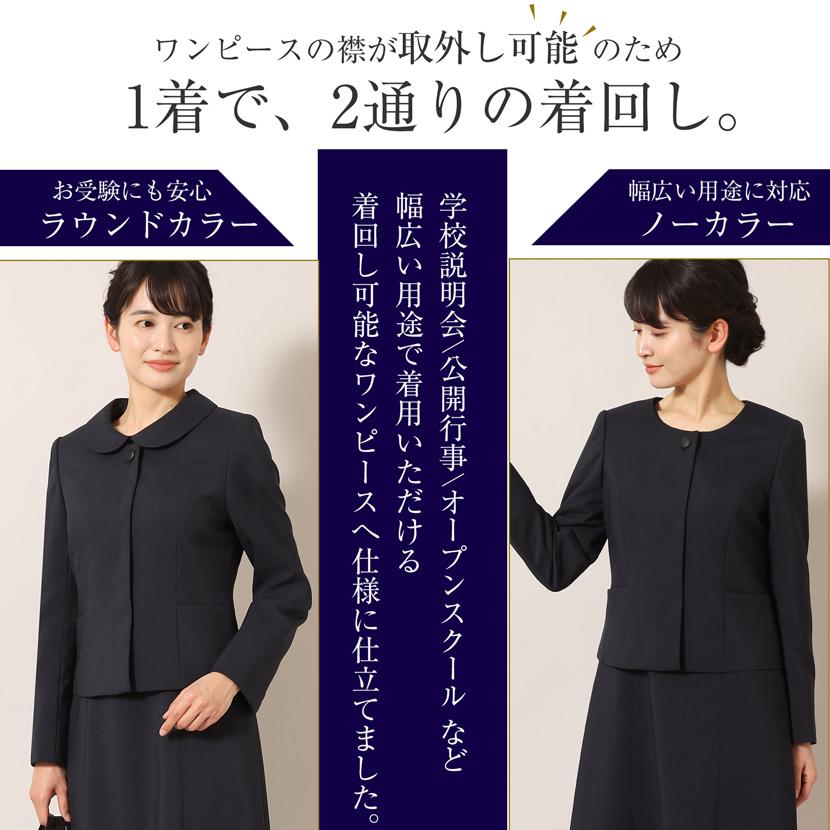 お受験ママ お母さん 20代 30代 40代 50代 説明会 学校説明会 入園式入学式 合格 送料無料 7号 9号 11号 13号 15号 幼稚園受験 小学受験受験 中学受験 お受験スーツ ママ 母 母親 服装 ワンピース ジャケット アンサンブル 防シワ 濃紺 紺 ネイビー 卒園式 卒業式 春 夏 秋 冬 オールシーズン 大きいサイズ 小さいサイズ お得 洗える 襟 付け襟 襟の取り外しができる レディース 2way