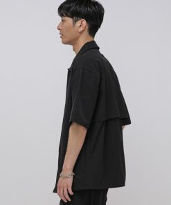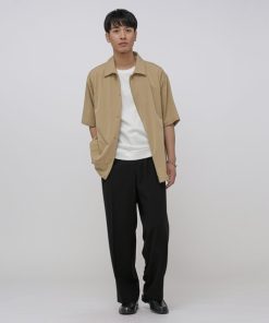 キーワード:シャツ メンズ レギュラーカラー ロング丈 半袖 無地 夏 春