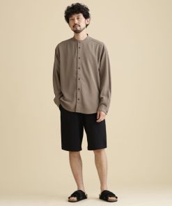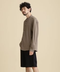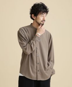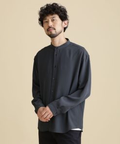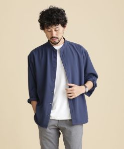 キーワード:シャツ メンズ ノーカラー ロング丈 長袖 無地