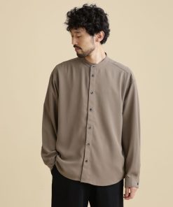 キーワード:シャツ メンズ ノーカラー ロング丈 長袖 無地