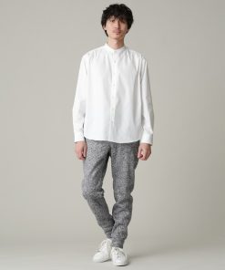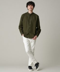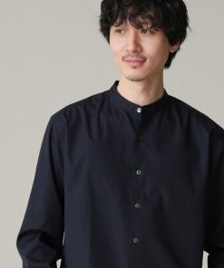 キーワード:シャツ メンズ コットン ノーカラー ロング丈 長袖 無地