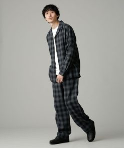 キーワード:シャツ メンズ コットン チェック ロング丈 開襟 長袖