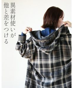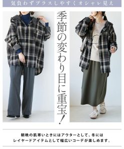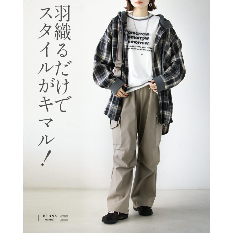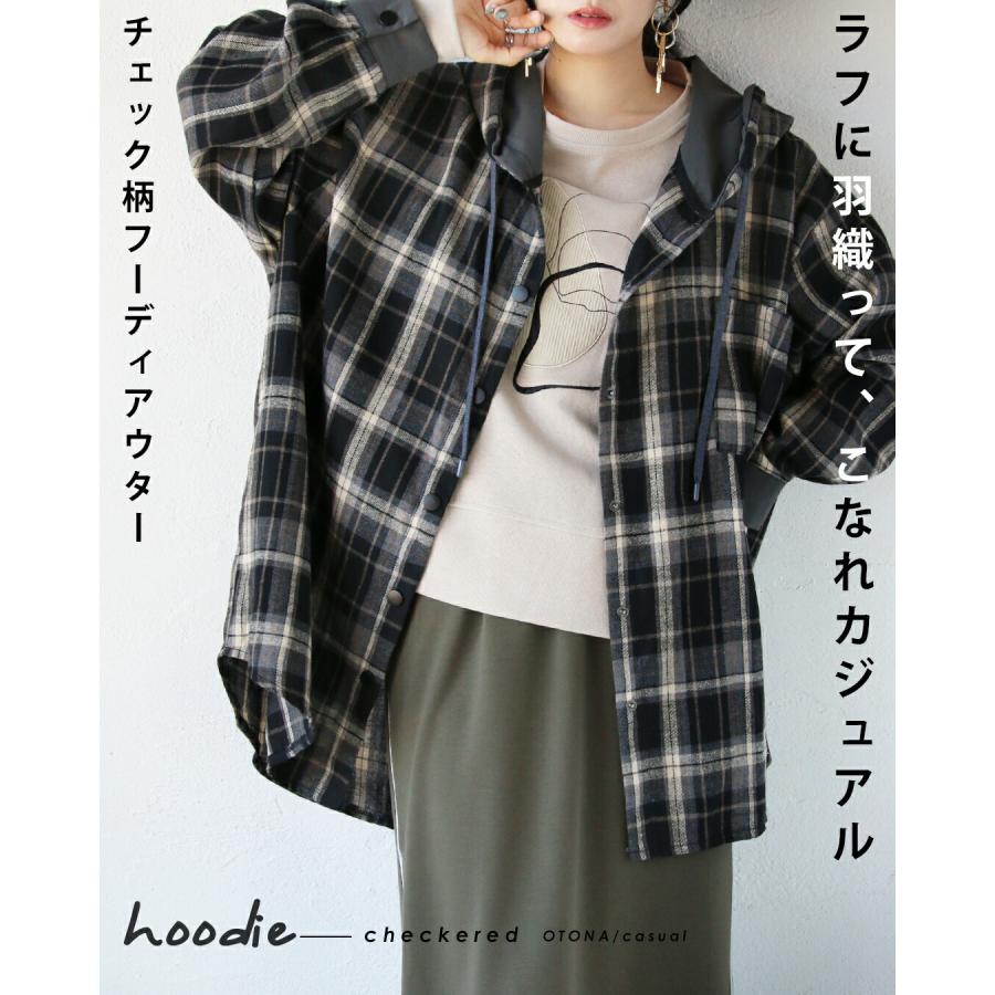 OTONA シャツ ラフに羽織ってこなれカジュアル チェック柄フーディアウター 薄手 長袖 パーカー 羽織り ライトアウター 秋冬春 ブラック 40代 50代 60代