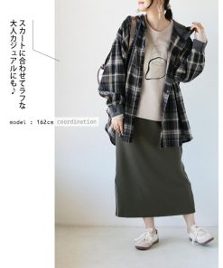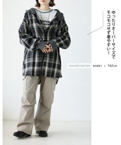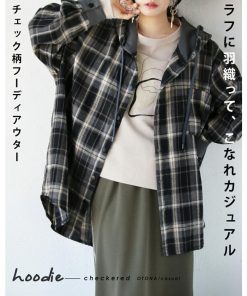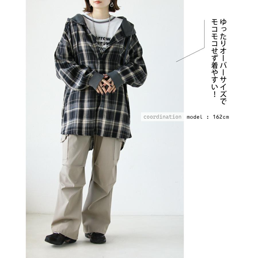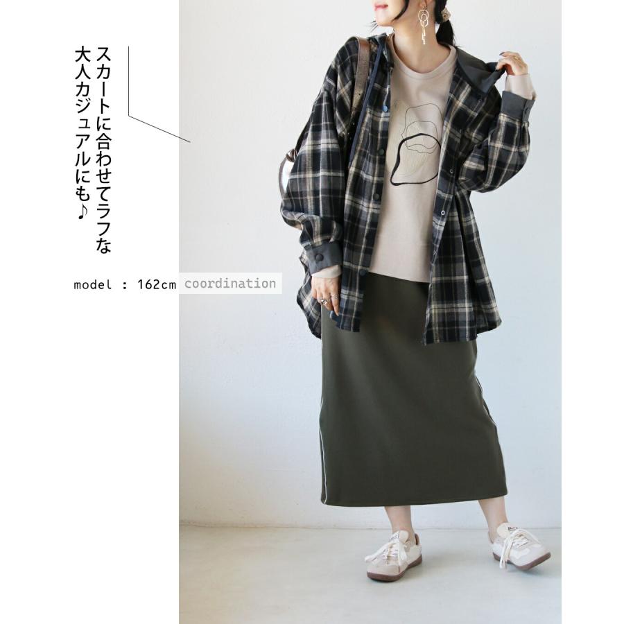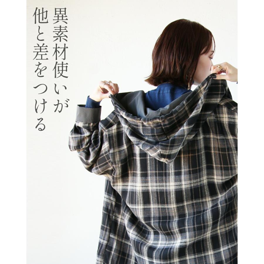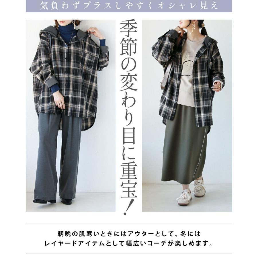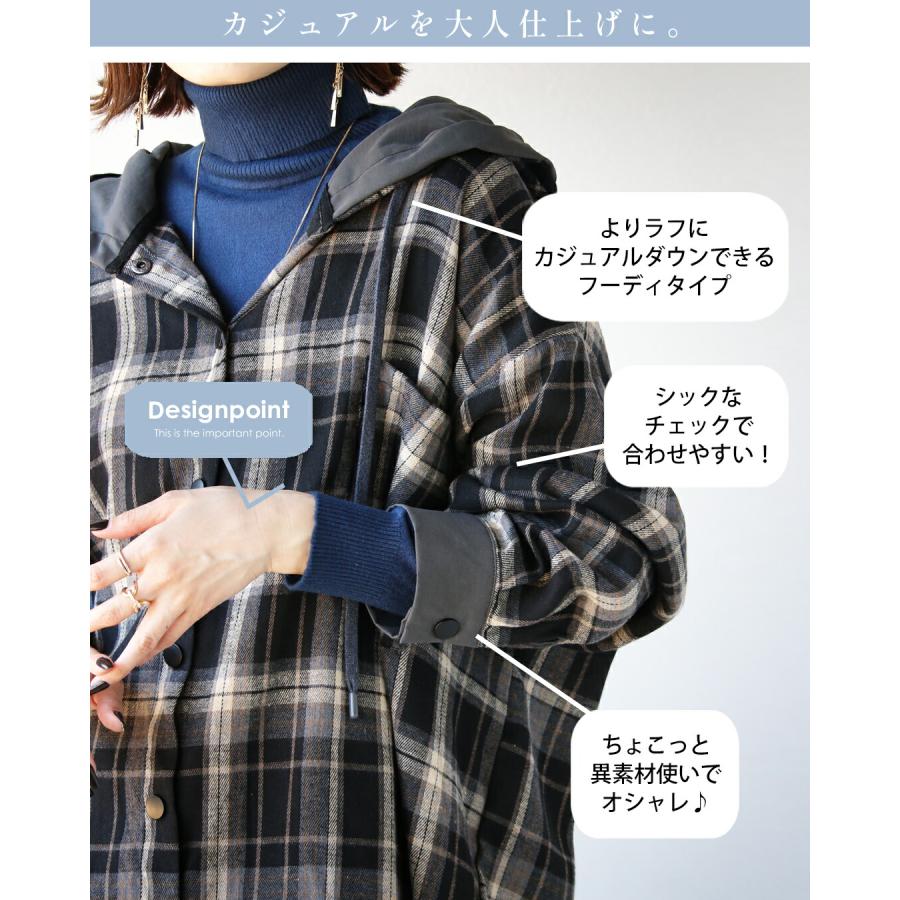 シャツ ラフに羽織って、こなれカジュアル チェック柄フーディアウター 薄手 長袖 パーカー 羽織り ライトアウター オーバーサイズ 大きいサイズ 体型カバー 秋 冬 春 秋冬 ブラック