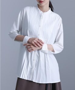 osharewalker シャツ ブラウス 長袖 レディース トップス 羽織り バンドカラー キルティング プリーツ 個性派 カジュアル きれいめ モード 春 秋「メール便可」「10」