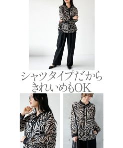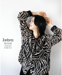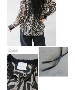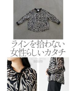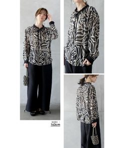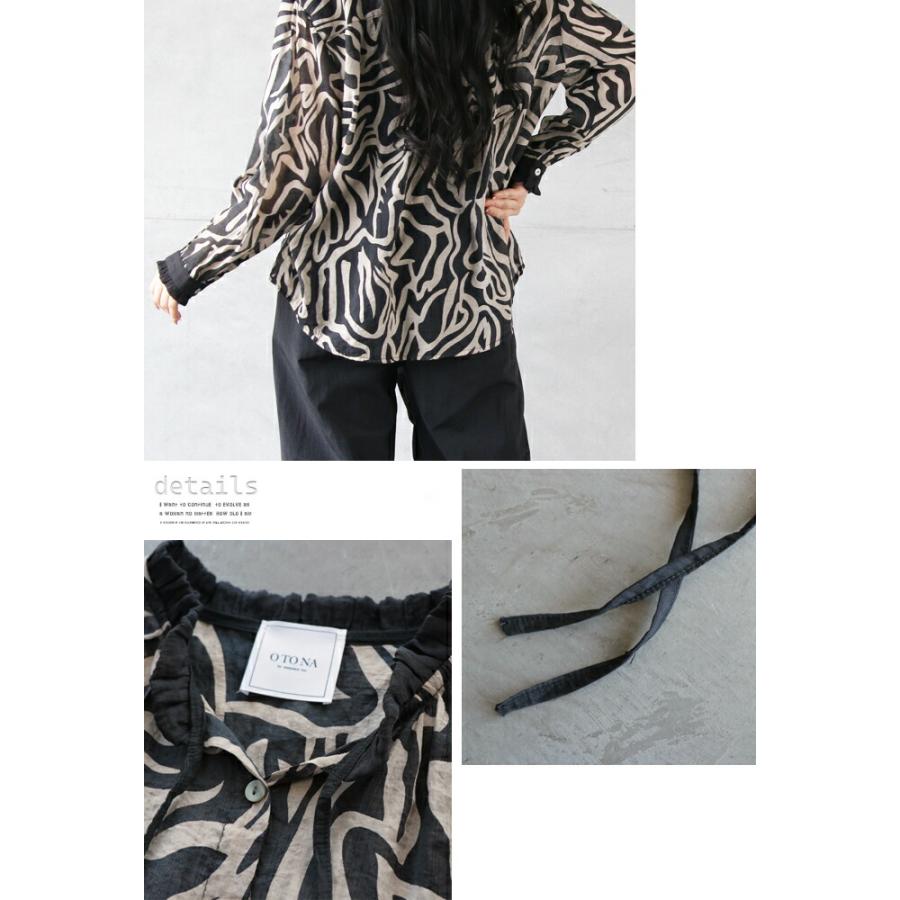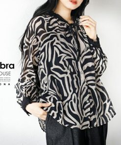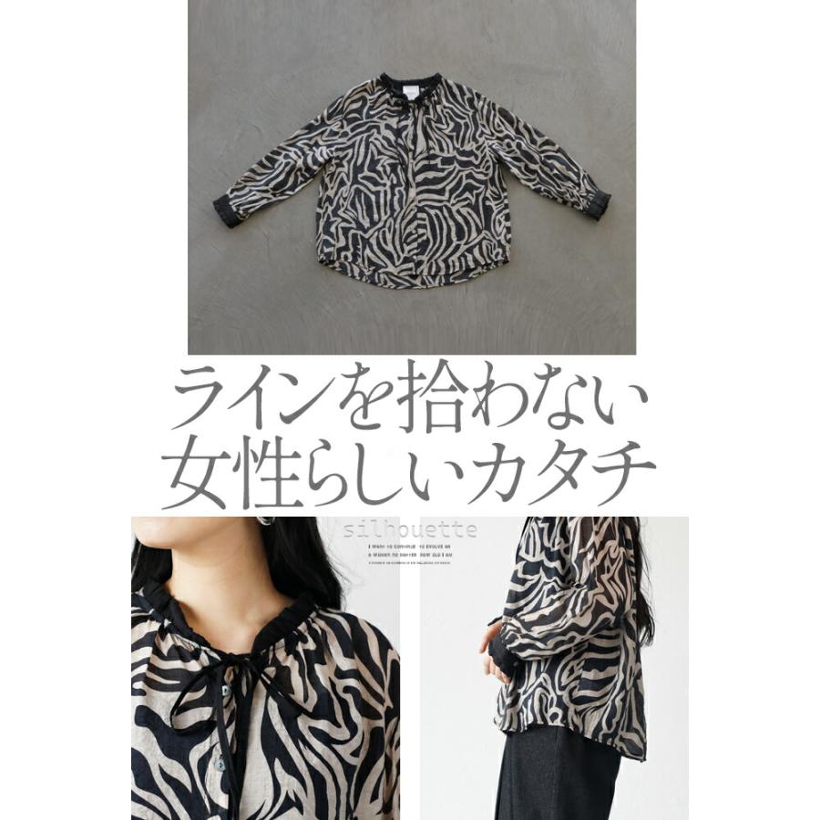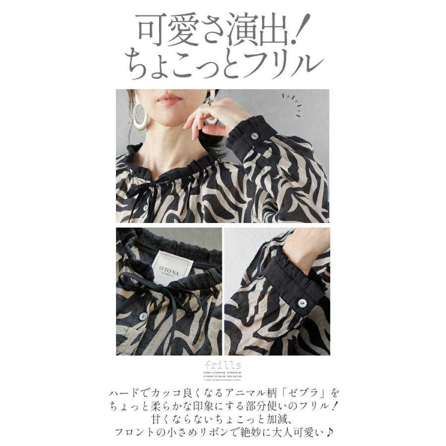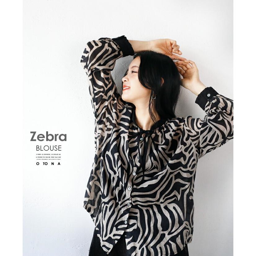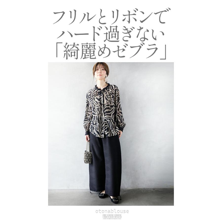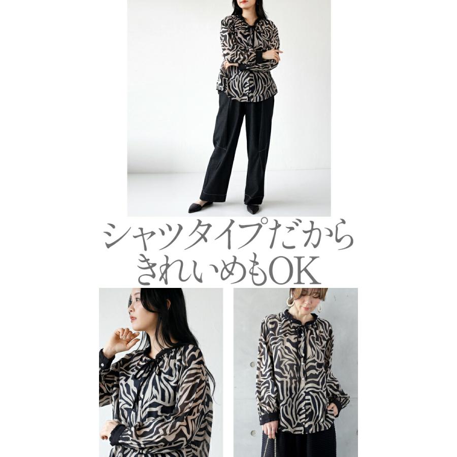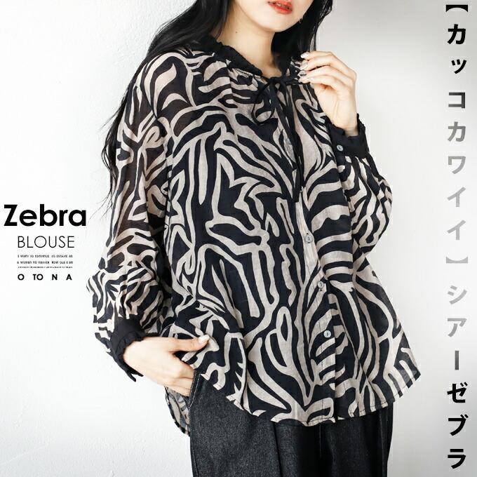 OTONA トップス ブラウス レディース ブラック ゼブラ 長袖 薄手 軽い アニマル 柄 日除け 涼しい フリル カッコカワイイ シアーゼブラ 40代 50代 60代