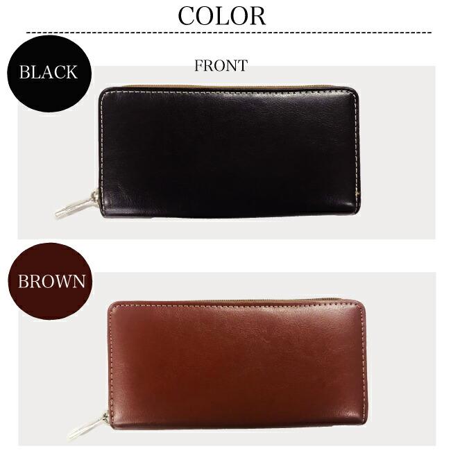 本革(牛革)を使用したラウンドジップの長財布(ロングウォレット)。