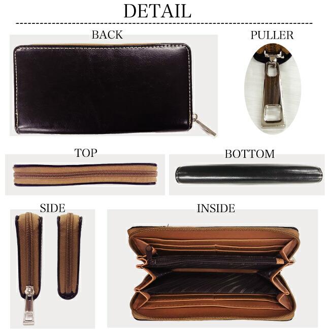 RETORO STYLE ラウンドファスナー 長財布 ロングウォレット カードケース コインケース シンプル 無地 レザー 牛革 本革(メンズ)W-1025