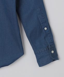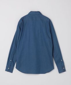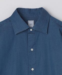 キーワード:シャツ メンズ デニム ワイドカラー 長袖 無地 オフィスカジュアル クールビズ ビジネス