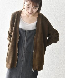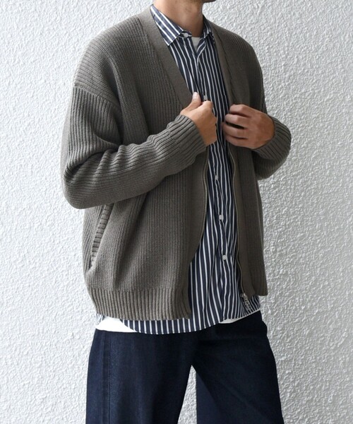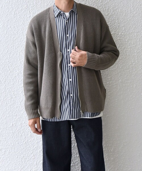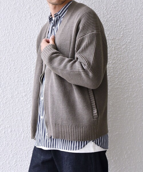 SHIPS any カーディガン any:「手洗い可能」畦編み ドライバーズ Vネック ショート ジップ メンズ レディース