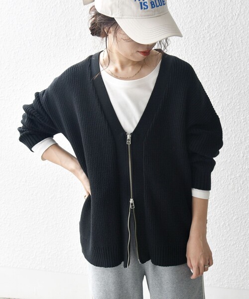 商品名:SHIPS any:〈手洗い可能〉畦編み ドライバーズ Vネック ショート ジップ カーディガン◇