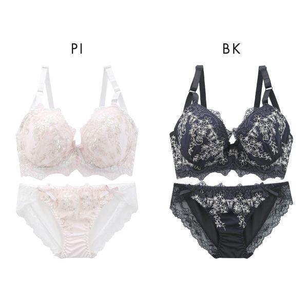 250708 3/4カップブラジャー ブラセット ブラジャーセット ブラショーツセット ブラ&ショーツセット ブラジャー&ショーツ 上下セット 下着セット フルバック パンツ 女性用 脇高ブラ 脇すっきり かわいい 可愛い 安い プチプラ コスパ 刺繍柄 ラメ キラキラ きらきら 大きいサイズ グラマーサイズ