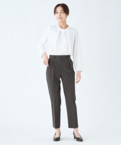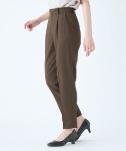 SUIT SELECT スラックス パンツ 「洗えるハイウエスト・ゆるテーパードパンツ」メランジ無地ストレッチ素材 レディース