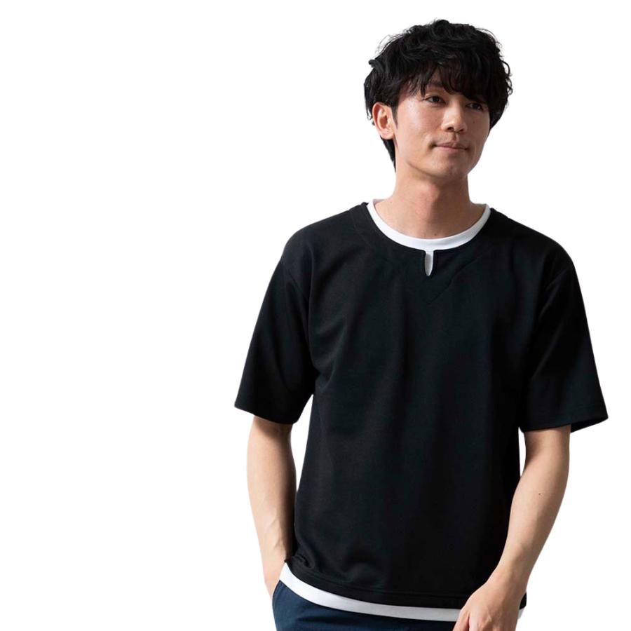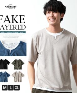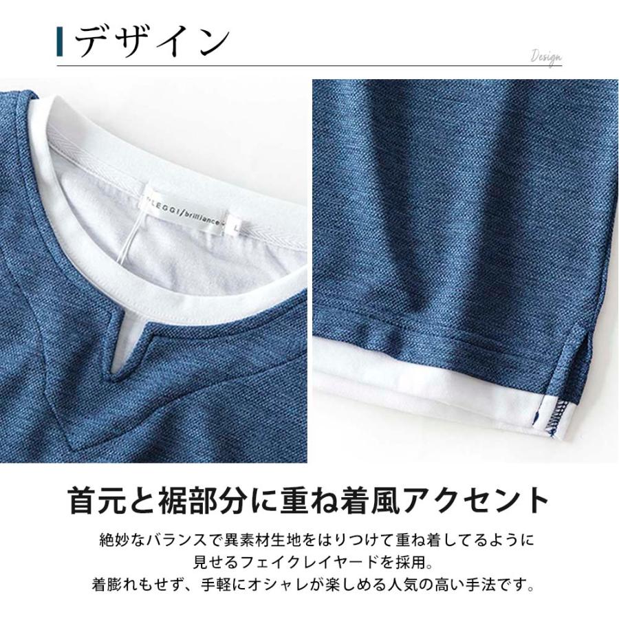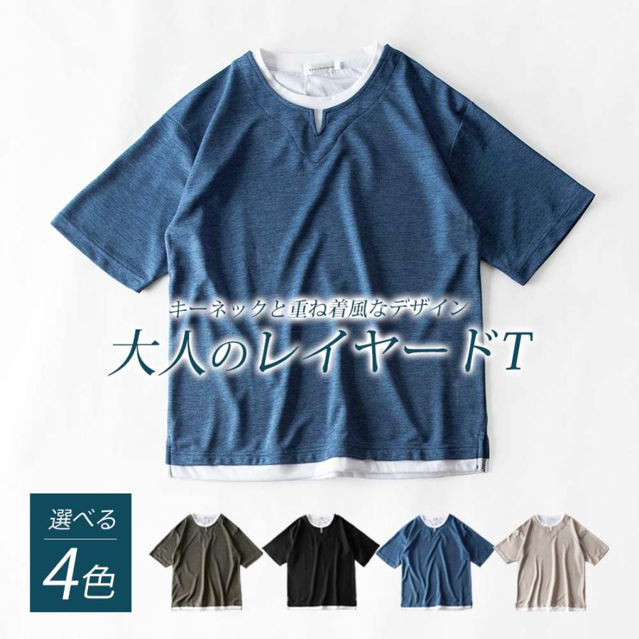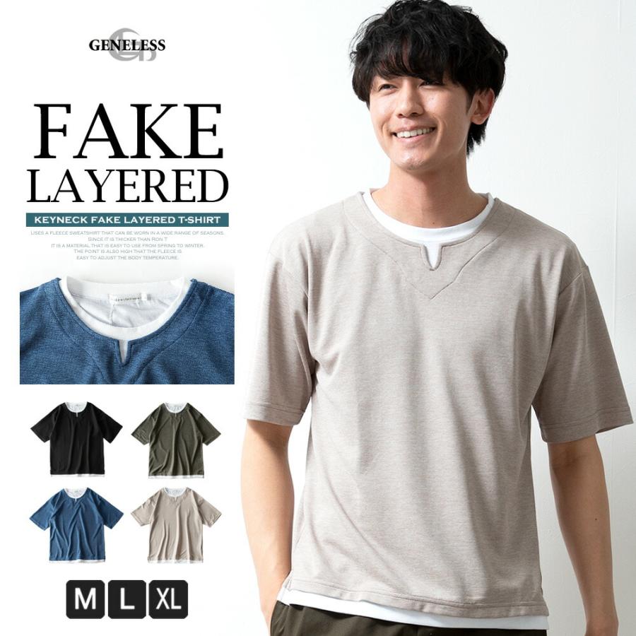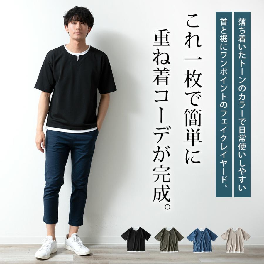 tシャツ メンズ 半袖 オシャレ レイヤード フェイクレイヤード Tシャツ 重ね着風 半袖tシャツ