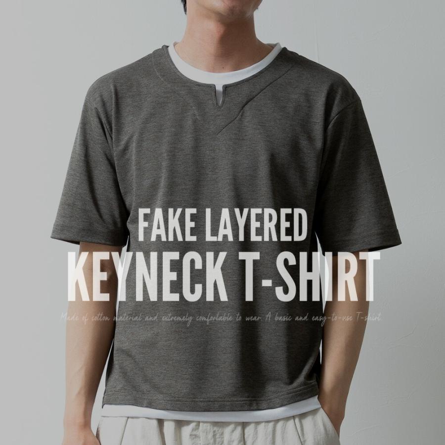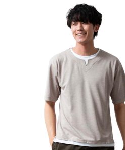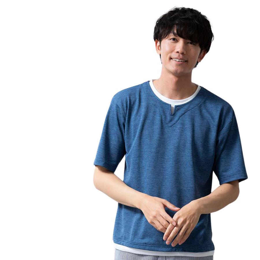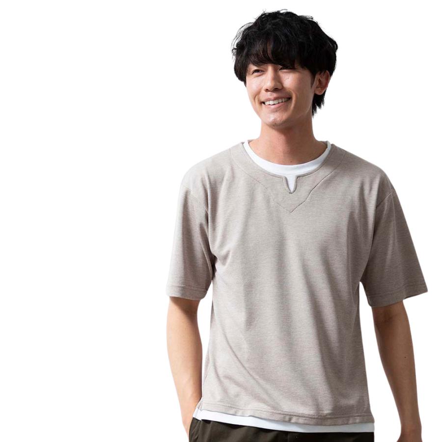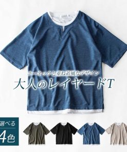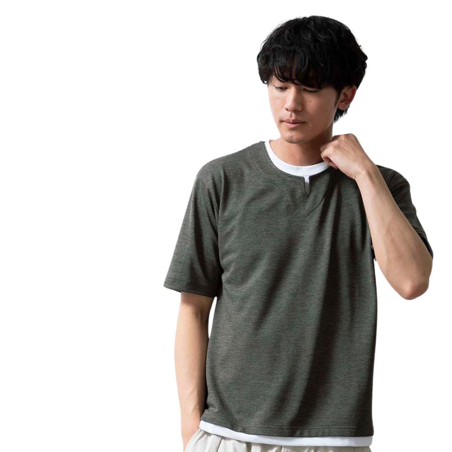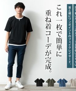 tシャツ メンズ 半袖 オシャレ レイヤード フェイクレイヤード Tシャツ 重ね着風 半袖tシャツ