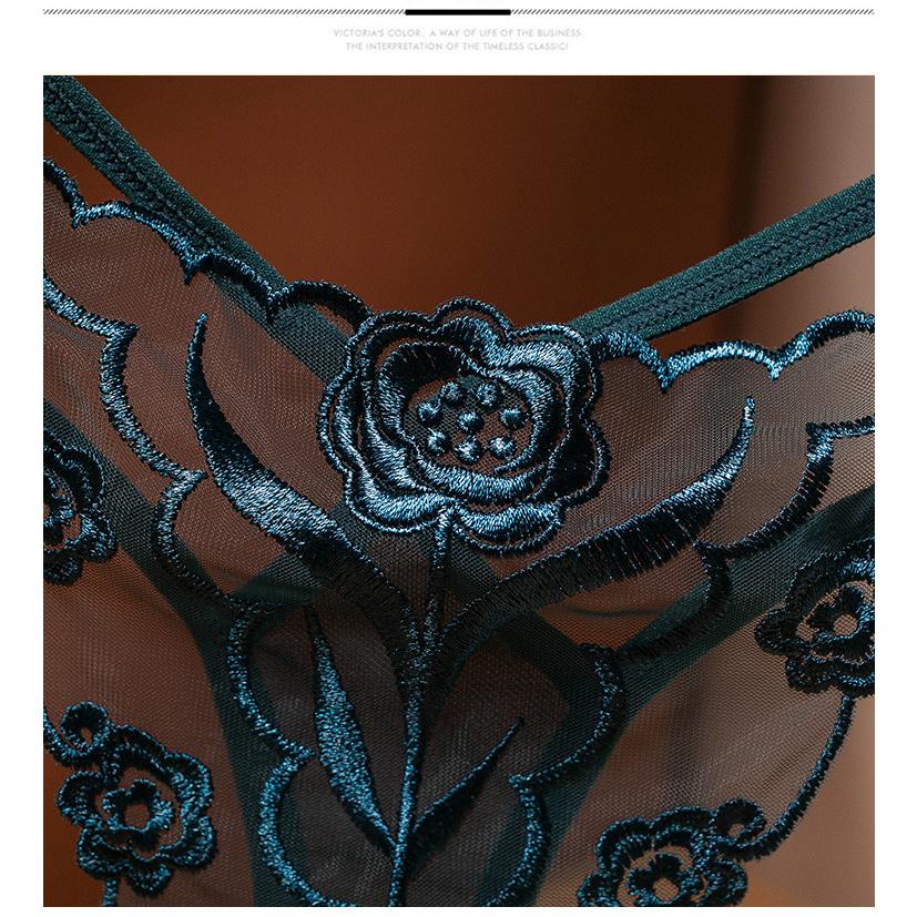 ゴージャスな花々の刺繍モチーフをあしらったエレガントセクシーなTバックショーツ。