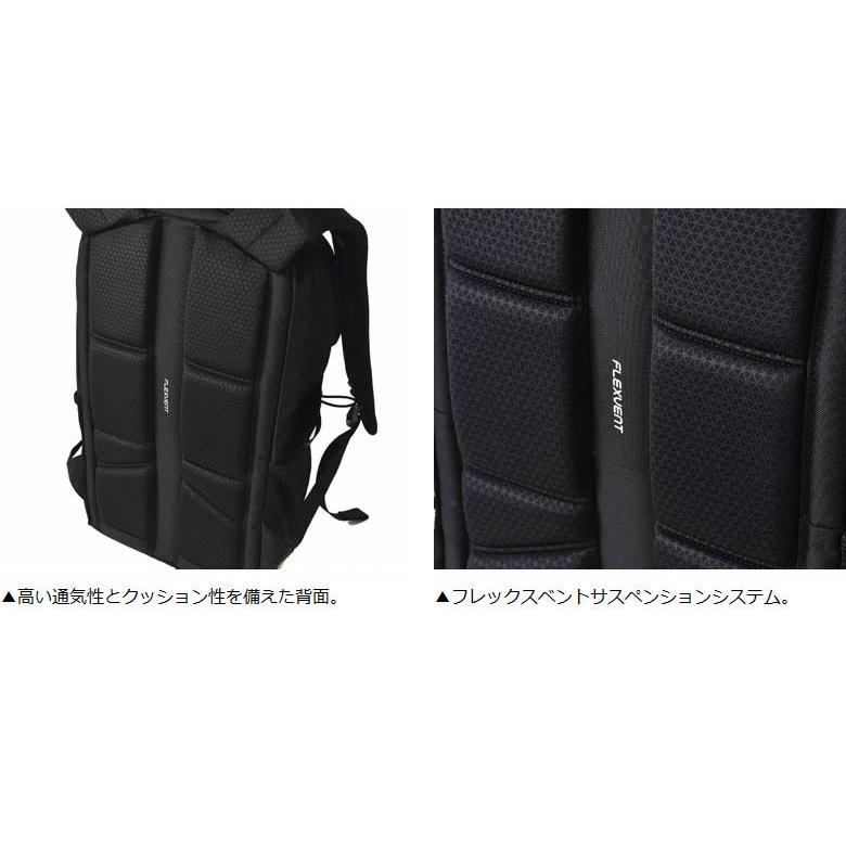 背面は、高い通気性とクッション性をもつフレックスベントサスペンションシステムで快適な背負い心地が得られます。
