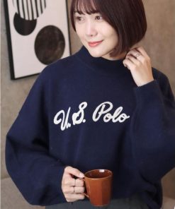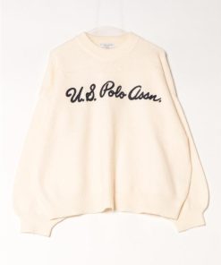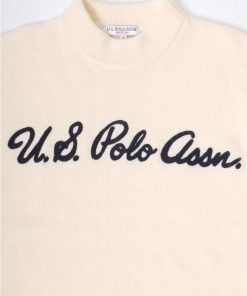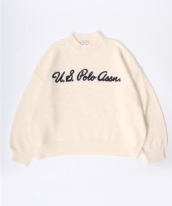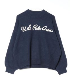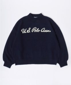U.S. POLO ASSN. 【胸元にチェーン刺繍】 モヘアライクニット モックネックプルオーバーセーター